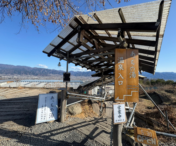 フルーツラインを車で上ってやってきた『ほったらかし温泉』