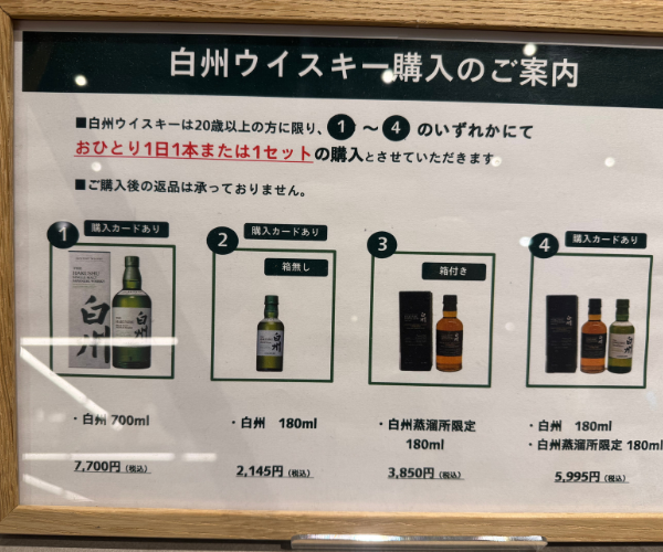 白州蒸留所の予約を取り
