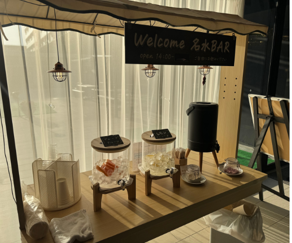 ウェルカム 名水BARには、さくら茶、デットクスウォーターなど