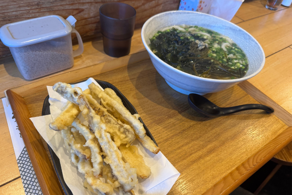 野菜購入後は、水産棟でお刺身を購入し、うどん屋さんの『めん処 りっちゃん』